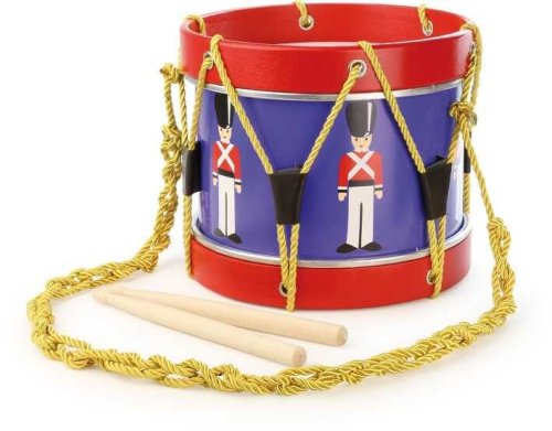 Dětský dřevěný buben s ilustrací vojenského bubeníka. Balení obsahuje také dvě paličky a zlatý pletený provázek, díky kterému si děti mohou buben zavěsit okolo krku a bubnovat tak při pochodu. Hlavní vlastnosti: prohlubuje lásku k hudbě a rytmikukvalitní zpracování