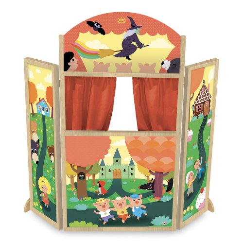 Velkolepé trojstěnné divadlo s motivem hrdinů oblíbených pohádek. Na prostřední stěně má divadlo ve vrchní části okno s oponou. Děti si mohou vymyslet vlastní příběh a zabavit své kamarády či rodinu. Hlavní vlastnosti: třístěnné dřevěné divadlo s 2 skládacími křídly a oponourozvíjí kreativitu, řeč a přestavivost dětí