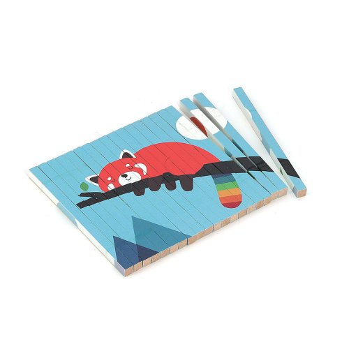 Nakloním se doleva a vidím pandu červenou! Nakloním se doprava a objeví se lední medvěd! Celkem čtyři různé ilustrace se ukrývají v jedné chytré skládačce – panda červená, lední medvěd, krokodýl a panda. Tato 4D skládačka s motivem zvířátek, které ilustroval známý umělec Andy Westface, nabízí dětem od 5 let zcela jedinečný herní zážitek. Díky dřevěným tyčinkám, které jsou potištěny ze čtyř stran, se podle úhlu pohledu objevují různé obrázky. Tento chytrý a nápaditý design nejen zaujme, ale také pomáhá dítěti rozvíjet logické myšlení a jemnou motoriku. Součástí je i vizuální značka, která dětem pomáhá skládačku správně složit. Skvělá volba pro zvídavé děti, které se rády učí hrou! Zasouváním tyčinek do rámečku si děti zlepšují koordinaci ruka-oko, přesnost pohybu i sílu v prstech. Tyto dovednosti jsou důležité nejen pro hry, ale i pro každodenní činnosti, jako je psaní nebo kreslení. Každý krok při skládání vyžaduje pozornost a pečlivost, takže se dítě učí trpělivosti a soustředění. Díky poetickému a barevnému stylu ilustrací Andyho Westface děti objevují nejen zvířátka, ale i nové příběhy. Mohou si samy vymýšlet scénky a povídky podle toho, co vidí. Hra tak rozvíjí nejen logické myšlení, ale i jazyk, slovní zásobu a představivost. Skládačka je proto skvělou kombinací vzdělávání a zábavy a je ideální pro smysluplné trávení času s rodiči i kamarády. Obsah balení•1 dřevěný stojánek•20 dřevěných tyčinek potištěných z každé ze 4 stran Hlavní vlastnosti•originální design ve 4 rozmě