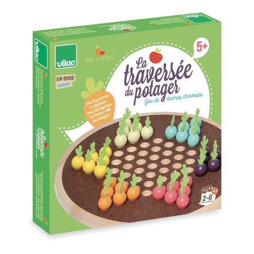 Podaří se Vám přemístit svou zeleninu na druhou stranu dříve než ostatním? Tradiční hra pro všechny věkové kategorie svým poutavým zpracováním v pestrých barvách vzbudí pozornost a stane se ozdobou pokojů nebo kluboven. Je vyrobena z odolného masivního dřeva s doplňky z plsti. Součástí balení je také praktický bavlněný sáček k uložení figurek. Hlavní vlastnosti: hrací deska a 36 figurekpro 2, 4 nebo 6 hráčůjedinečný design a zpracování Zkrácený návod hry:Čínská dáma (varianta halmy) jako zeleninová zahrádka. Cílem hry je dostat svých 6 figurek do protilehlého cípu hvězdy jako první. Vždy se začíná v cípu, který je nejdál od hráče – protilehlého k němu, figurky postupně posouvá směrem k sobě, do protilehlého (k sobě nejbližšího) cípu hvězdy. Při 2 nebo 4 hráčích zůstanou některé cípy volné. Figurky nelze brát. Vítězí hráč, který jako první dostane všech 6 figurek na cíp protilehlý startovnímu cípu.Pohyby figurek:Dopředu nebo dozadu o 1 pole v jakémkoliv směru. Mohou přeskakovat ostatní figurky několikrát za sebou (jen sousední k té, kterou pohybujete). Mezi přeskoky můžete měnit směr. Figurky nelze na protilehlý cíp hvězdy posunout, tento přesun je povolen pouze při přeskakování, tzn. figurka musí do cípu doskákat.