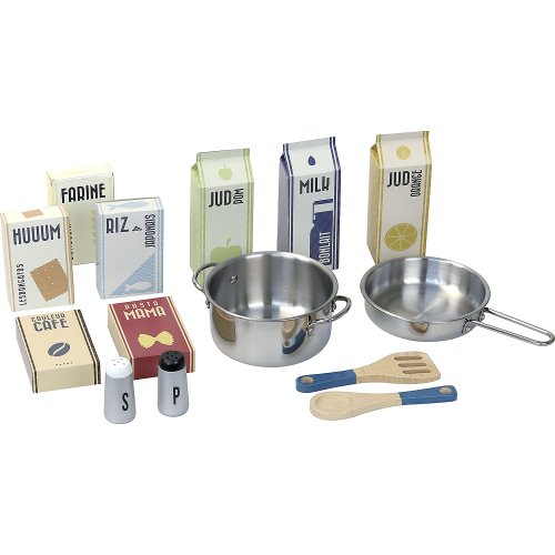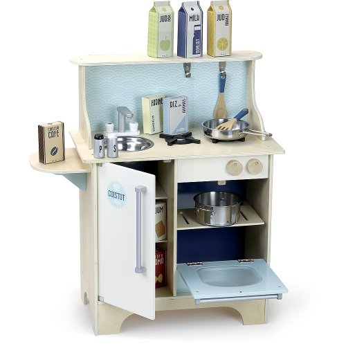 Pokud máte doma nadšené pomocníky, určitě se jim bude líbit tato kuchyňka v modré barvě. Možná se díky této hračce děti v budoucnu stanou špičkovými kuchaři a kuchařkami. V balení kromě čepice a zástěry šéfkuchaře najdete také solničku a pepřenku, vařečku, hrnec, pánev a 8 tetrapaků s potravinami. Kuchyňka má samozřejmě dřez, troubu, sporák s klikajícími ciferníky a mnoho úložného prostoru. Po rozbalení nutno složit. Vhodné od 3 let. Hlavní vlastnosti: včetně 24 ks doplňkůpevná dřevěná konstrukcefunkční a odnímatelné prvky