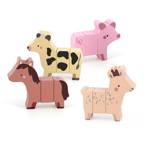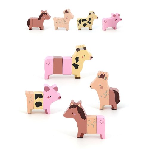Jak by vypadal koníček zkřížený s prasátkem nebo koza s koníkem? Zábavná dřevěná magnetická hračka probouzí dětskou fantazii i jemnou motoriku. Každé zvířátko se skládá ze 3 dílků, které jsou vzájemně kombinovatelné. Děti si tak mohou vytvářet zvířátka, ať už podle skutečnosti nebo podle vlastní fantazie, mohou vymýšlet příběhy a seznamovat se se světem zvířat zábavným a hravým způsobem. Hračka je navržená tak, aby podporovala svobodnou hru, rozvoj tvořivosti a radost z objevování. Při manipulaci s magnetickými částmi si děti procvičují koordinaci ruka-oko, jemnou motoriku i logické myšlení. Díky dřevěnému provedení je navíc hračka příjemná na dotek a odolná. Je to ideální společník pro dlouhé hodiny tvořivé zábavy. Zvířátka jsou ilustrována výtvarnicí Sarah Betz, která hračce vtiskla poetický a něžný styl inspirovaný přírodou. Její kresby dodávají hračce kouzlo, které si získá srdce dětí i rodičů. Hlavní vlastnosti: 12 dílků, 4 zvířátka – kravička, koníček, prasátko, kozainspirováno Montessori pedagogikoupodporuje fantaziirozvíjí kreativitutrénuje jemnou motoriku a koordinaci ruka-okorozvíjí schopnost analyzování, třídění a skládánívhodné pro děti od 2 letilustrace Sarah Betz