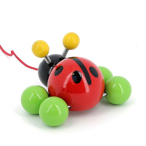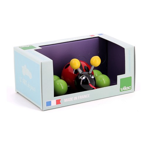 Dřevěná tahací beruška z lakovaného masivu, s tykadly na pružince. Ty se při tahání pohybují. Vyrobeno ve Francii. Hlavní vlastnosti: podporuje rovnováhu a koordinaci pohybůvyrobeno ve Francii