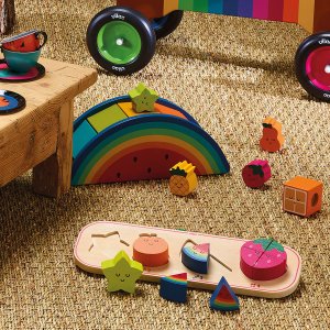 Dá si někdo hrušku? Nebo raději ananas, jahodu či karambolu? Vkládačka ve tvaru melounu podle návrhu Andy Westface potěší každé dítě. Tato raná hračka inspirovaná Montessori v jasných barvách má 4 tvarované otvory pro vkládání ovoce. Víko s otvory je posouvací, aby šly ovocné tvary jednoduše vyjmout a pokračovat ve vkládání. Při hře děti rozvíjejí mnoho dovedností jako je soustředění, obratnost, motorika, trpělivost a koordinace ruka-oko. Naučí se manipulovat s ovocem tak, aby se vešlo do odpovídajících otvorů. Díky unikátnímu designu se bude vkládačka krásně vyjímat v každém dětském pokojíčku nebo herně. Hlavní vlastnosti: vkládačka ve tvaru melounu, 4 vkládací tvary – jahoda, karambola, ananas, hruškanápaditý design Andy Westfacehračka inspirovaná Montessorirozvíjí obratnost, koordinaci ruka-oko a trpělivostpodporuje představivost a soustředění Andy Westface je ilustrátor žijící a působící v Hongkongu. Svou prací se snaží zprostředkovat silné pocity a jasné myšlenky za pomoci jednoduchých tvarů, kompozic i barevnosti. Typickými prvky jeho děl jsou zvířata a duha, které si oblíbil pro jejich čistotu, upřímnost a schopnost vzbuzovat radost.