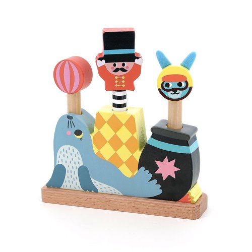 Krásná dřevěná vystřelovací hra s ilustracemi umělkyně Michelle Carlslund v motivu cirkusových čísel. Balón a dvě postavičky vyskakují z cirkusové základny. Zázrak vynalézavosti a jednoduchosti jistě okouzlí malé i velké. Zatlačte na balón či postavičky a uvidíte, jak vyskočí do vzduchu. Hračka je ideální pro rozvoj jemné motoriky a koordinace ruka-oko. Hlavní vlastnosti: 1 cirkusová základna, 3 vyskakující figurkypodněcuje představivost a nápaditou hruvyrobeno ekologicky, šetrně k životnímu prostředídesign Michelle Carlslund Cestujte s námi v naivním a elegantním světě dánské ilustrátorky Michelle Carlslund, světě jemných barev, který je plný roztomilých medvědů a přátelských ptáčků. V roce 2010, když Michelle ještě studovala grafický design, vytiskla doma své ilustrace a zkusila je prodat na designovém trhu, kde se setkaly s velkým úspěchem! Několik obchůdků chtělo začít prodávat její výtvory, a tak ji napadlo, že by bylo fajn začít podnikat. Michelle se rychle stala uznávanou nezávislou ilustrátorkou. Dnes lze její ekologická grafická díla zakoupit po celém světě v designových buticích, papírnictvích a dětských obchodech. Michelle se inspiruje vším kolem ní. Její výtvory jsou něžné a poetické, stylizovaný a dětinský styl, který se perfektně prolíná s hračkami firmy Vilac. „Jsem hranolky milující, časová optimistka a tvůrkyně ekologických plakátů a ilustrátorka na volné noze se sídlem v dánské Kodani,“ to by řekla ilustrátorka Michelle Carlslundová, kdyby se měla popsat jednou větou.