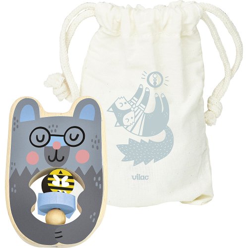 Krásné dřevěné chrastítko s motivem medvídka, navrženo Michelle Carlslund. Uprostřed 3 barevné korálky, které příjemně chrastí. Baleno v textilním pytlíku, je ideálním narozeninovým dárkem. Vyrobeno ve Francii. Hlavní vlastnosti: vyrobeno ve Francii design Michelle Carlslund Cestujte s námi v naivním a elegantním světě dánské ilustrátorky Michelle Carlslund, světě jemných barev, který je plný roztomilých medvědů a přátelských ptáčků. V roce 2010, když Michelle ještě studovala grafický design, vytiskla doma své ilustrace a zkusila je prodat na designovém trhu, kde se setkaly s velkým úspěchem! Několik obchůdků chtělo začít prodávat její výtvory, a tak ji napadlo, že by bylo fajn začít podnikat. Michelle se rychle stala uznávanou nezávislou ilustrátorkou. Dnes lze její ekologická grafická díla zakoupit po celém světě v designových buticích, papírnictvích a dětských obchodech. Michelle se inspiruje vším kolem ní. Její výtvory jsou něžné a poetické, stylizovaný a dětinský styl, který se perfektně prolíná s hračkami firmy Vilac. „Jsem hranolky milující, časová optimistka a tvůrkyně ekologických plakátů a ilustrátorka na volné noze se sídlem v dánské Kodani,“ to by řekla ilustrátorka Michelle Carlslundová, kdyby se měla popsat jednou větou.