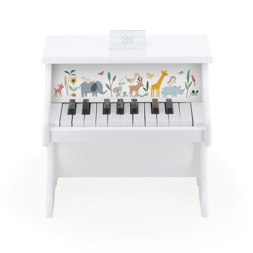 Kdo jako malý nesnil o tom stát se virtuózem? Dřevěné piáno s jemnými ilustracemi od Sarah Betz otevírá dětem od 3 let dveře do světa hudby hravou a přirozenou cestou.Piáno je vyrobené z masivního dřeva, má velikost ideální pro malé ručičky a je dodáváno s 10 notami, které děti seznámí se základy hudby. Bez potřeby elektroniky umožňuje vytvářet melodie, objevovat rytmus a zažívat radost ze hry. Tato hudební hračka rozvíjí jemnou motoriku, koordinaci ruka–oko, posiluje prsty a pomáhá budovat obratnost – dovednosti důležité i pro psaní nebo další kreativní činnosti. Hraní na klávesy navíc pomáhá chápat vztahy mezi akcí a zvukem, což podporuje logické myšlení i trpělivost. Piáno vydává krásné zvuky a rozvíjí vztah k hudbě, ale není to profesionální hudební nástroj. Hračka není dokonale naladěná, slouží především k zábavě. A jako bonus? Díky elegantnímu lesklému laku se piáno stane i stylovým doplňkem dětského pokoje nebo obýváku. Hlavní vlastnosti: piano s 18 klávesamiprohlubuje lásku k hudbě a rytmikurozvíjí jemnou motoriku a kreativitustimulace kreativitydesign Sarah Betzkvalitní zpracování