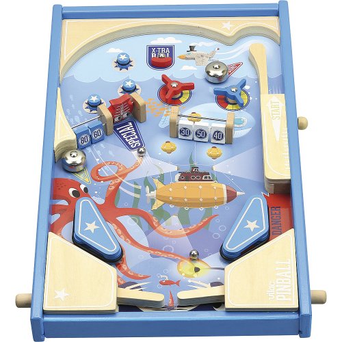 Tento dřevěný pinball je dodáván se 3 kovovými míčky, díky kterým můžete sestřelovat své cíle, zvonit na zvonku otočit turnikety... Získejte co nejvyšší skóre a vyhrajte tuto podmořskou bitvu! Dřevěné nožky jsou oddělitelné. Hlavní vlastnosti: oblíbená hračka v dřevěné podoběsoučástí balení jsou 3 ks kovových kuličeksklopné nožičky pro ideální sklon dráhy
