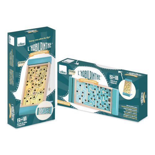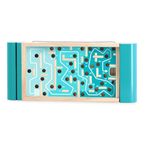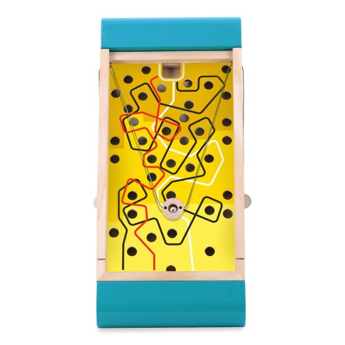 Proveďte neposednou kuličku cestami plnými nástrah v podobě propadlišť. Labyrint Vám přináší zábavu, která důkladně prověří Vaši šikovnost a trpělivost, a to rovnou ve dvou variantách! Na jedné straně pohyb kuličky ovládejte táhly a vyberte si přitom jednu z trojice barevně vyvedených tras s různou obtížností. Na opačné straně směřování kuličky ovlivňujte pouhým náklonem labyrintu. Hračka je velmi kompaktní, opatřená praktickým víkem, které díky promyšlené konstrukci využijete i jako oporu při hře. Je vyrobena z pečlivě opracovaného a atraktivně lakovaného dřeva. Hlavní vlastnosti: labyrint a 3 kuličkyjedinečný design a zpracovánípraktické a kompaktní balení