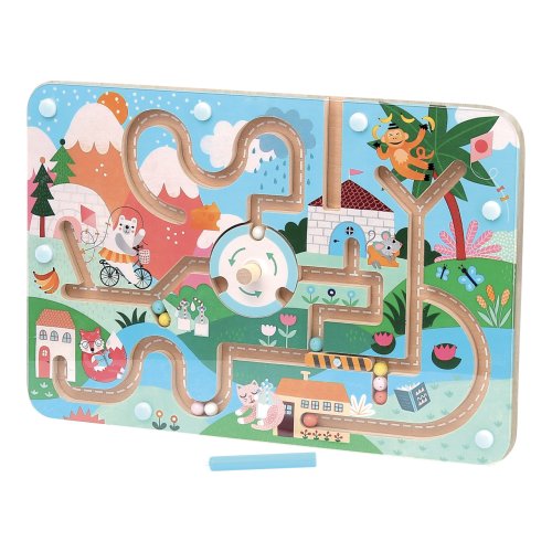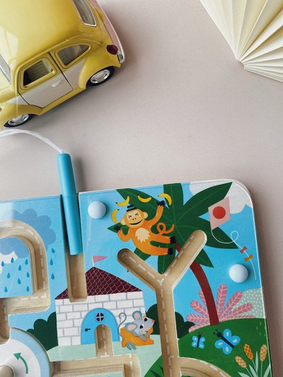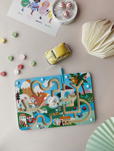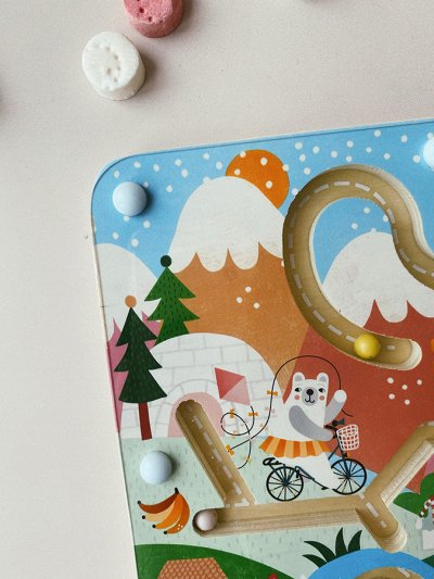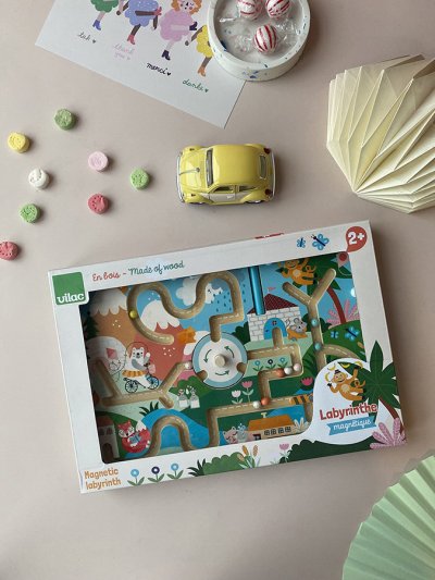 Uveďte děti do poetického světa s ilustracemi Michelle Carlslundové. Pomocí magnetického pera se mohou pokoušet přihrát jednotlivým zvířátkům jejich kuličky. Dostane pan kocour své mléko, bílé kuličky? Rozverná opička své banány, žluté kuličky? Komupak rozdat kuličky ostatních barev, přátelskému medvídkovi, chytré lišce, nebo hbité myšce? Na cestě čeká množství překážek a nástrah, které mohou děti překonávat pomocí svého důvtipu. Zábavnou formou takto mohou trénovat jemnou motoriku nebo orientaci v prostoru. Při snaze pojmenovat vyobrazená zvířátka i děje a pochopit souvislosti mezi nimi lze také rozvíjet poznávací dovednosti. Hlavní vlastnosti: bludiště a magnetické perozábavné i bezpečné díky magnetickému principudesign Michelle Carlslund Cestujte s námi v naivním a elegantním světě dánské ilustrátorky Michelle Carlslund, světě jemných barev, který je plný roztomilých medvědů a přátelských ptáčků. V roce 2010, když Michelle ještě studovala grafický design, vytiskla doma své ilustrace a zkusila je prodat na designovém trhu, kde se setkaly s velkým úspěchem! Několik obchůdků chtělo začít prodávat její výtvory, a tak ji napadlo, že by bylo fajn začít podnikat. Michelle se rychle stala uznávanou nezávislou ilustrátorkou. Dnes lze její ekologická grafická díla zakoupit po celém světě v designových buticích, papírnictvích a dětských obchodech. Michelle se inspiruje vším kolem ní. Její výtvory jsou něžné a poetické, stylizovaný a dětinský styl, který se perfektně prolíná s hračkami firmy Vilac. „Jsem hranolky milující, časová optimistka a tvůrkyně ekologických plakátů a ilustrátorka na volné noze se sídlem v dánské Kodani,“ to by řekla ilustrátorka Michelle Carlslundová, kdyby se měla popsat jednou větou.