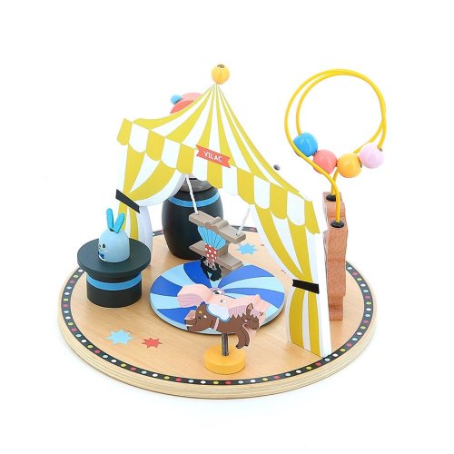 Objevte kouzelný svět pod cirkusovým stanem Vilac, ilustrovaný výtvarnicí Michelle Carlslund! Tato hravá dřevěná hračka nabízí šest interaktivních aktivit – od akrobatických kousků přes skákací pružiny až po optické iluze. Každý prvek zaujme dětské smysly, probudí zvídavost a podpoří fantazii.Hračka je vhodná pro děti od 18 měsíců a přirozeně rozvíjí jemnou motoriku, koordinaci ruka–oko i schopnost pozorovat, chápat souvislosti a experimentovat. Barevné postavičky se pohybují, vyskakují, vydávají zvuky a přinášejí radost i smích. Skvělá volba pro nejmenší, která spojuje zábavu s učením v duchu Montessori principů. 6 interaktivních aktivit: 1. Vyskakovací figurka – postavička, která po stisknutí vesele vyskočí. 2. Kovový labyrint – dráha s korálky a postavičkou, které lze posouvat a cvičit tak jemnou motoriku. 3. Pískací králíček – při stisknutí vydává zábavný pískavý zvuk. 4. Optická iluze – otáčivý kolotoč vytvářející kouzelný vizuální efekt. 5. Kůň na pružině – roztomilý houpací prvek pro radostný pohyb. 6. Akrobat na provázku – figurka, která se při posunu elegantně houpe a předvádí „cirkusový trik“. Hlavní vlastnosti: 6 interaktivních aktivitpodpora představivosti, kreativity a smyslového vnímáníučení pomocí hry – principy Montessorirobustní a bezpečné dřevěné provedenídesign Michelle Carlslund Cestujte s námi v naivním a elegantním světě dánské ilustrátorky Michelle Carlslund, světě jemných barev, který je plný roztomilých medvědů a přátelských ptáčků. V roce 2010, když Michelle ještě studovala grafický design, vytiskla doma své ilustrace a zkusila je prodat na designovém trhu, kde se setkaly s velkým úspěchem! Několik obchůdků chtělo začít prodávat její výtvory, a tak ji napadlo, že by bylo fajn začít podnikat. Michelle se rychle stala uznávanou nezávislou ilustrátorkou. Dnes lze její ekologická grafická díla zakoupit po celém světě v designových buticích, papírnictvích a dětských obchodech. Michelle se inspiruje vším kolem ní. Její výtvory jsou něžné a poetické, stylizovaný a dětinský styl, který se perfektně prolíná s hračkami firmy Vilac. „Jsem hranolky milující, časová optimistka a tvůrkyně ekologických plakátů a ilustrátorka na volné noze se sídlem v dánské Kodani,“ to by řekla ilustrátorka Michelle Carlslundová, kdyby se měla popsat jednou větou.