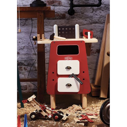 Tento originální dřevěný pracovní ponk s vintage vzhledem dětem umožní tvořit stejně, jak to vidí u dospělých. Magická pracovní deska, která drží pohromadě díky suchému zipu, umožňuje dětem řezat dřevo bez rizika úrazu. Kladivem zaklepou dětské dřevěné hřebíky. Šroubovákem a klíčem věci smontují a opět rozmontují dle gusta. Představivost, trpělivost a vynalézavost. Nechte talent nejmenších zářit! Oboustranný kufr s nářadím od Ateliéru Vilac. Hlavní vlastnosti: obsahuje 76 ks příslušenstvídesigne od Ateliéru Vilaclze sestavit 4 modulární konstrukce Ateliér VilacPostavte, renovujte, udělejte si sami, jedním slovem... sen! Zcela nová řada pro kutily. Jako byste opravdu cítili vůni dřeva, dotýkali se hoblin z bukového dřeva na podlaze dílny. Ponořte se s námi do tohoto kreativního světa, který dá volnou ruku fantazii malých i velkých dětí. Krásná vintage kolekce s modulárními a doplňkovými hračkami.