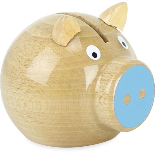 Pokladnička ve tvaru roztomilého prasátka v přírodní barvě s modrým rypákem. Vyrobeno ve Francii z lakovaného dřeva. Hlavní vlastnosti: vyrobeno ve Francii