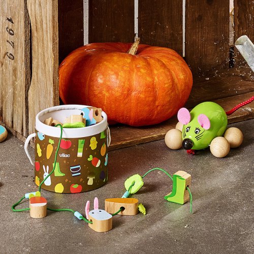 Krásná provlékačka v motivu farmy. V kompaktním balení najdete 14 ilustrovaných dřevěných korálků (např. lilek, rajče, ptáček, gumáky), které děti mohou navlékat na textilní šňůrku. Hračka pomáhá s rozvojem jemné motoriky. Vybaveno bezpečnostními sponami. Vhodné od 18 měsíců. Hlavní vlastnosti: 14 korálkůvyrobeno ekologicky, šetrně k životnímu prostředí