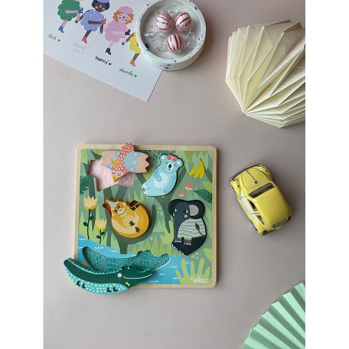 Pěkná senzorická vkládačka pro děti, plně dřevěná. Když děti z rámečku vyjmou dílek, objeví pod ním určitou látku, která má pod každým dílkem zvířete jinou texturu. Ilustrováno Michelle Carlslund. Hlavní vlastnosti: rozšiřuje smyslové vnímání dětíoriginální design Michelle Carlslundobsahuje 5 dílků Cestujte s námi v naivním a elegantním světě dánské ilustrátorky Michelle Carlslund, světě jemných barev, který je plný roztomilých medvědů a přátelských ptáčků. V roce 2010, když Michelle ještě studovala grafický design, vytiskla doma své ilustrace a zkusila je prodat na designovém trhu, kde se setkaly s velkým úspěchem! Několik obchůdků chtělo začít prodávat její výtvory, a tak ji napadlo, že by bylo fajn začít podnikat. Michelle se rychle stala uznávanou nezávislou ilustrátorkou. Dnes lze její ekologická grafická díla zakoupit po celém světě v designových buticích, papírnictvích a dětských obchodech. Michelle se inspiruje vším kolem ní. Její výtvory jsou něžné a poetické, stylizovaný a dětinský styl, který se perfektně prolíná s hračkami firmy Vilac. „Jsem hranolky milující, časová optimistka a tvůrkyně ekologických plakátů a ilustrátorka na volné noze se sídlem v dánské Kodani,“ to by řekla ilustrátorka Michelle Carlslundová, kdyby se měla popsat jednou větou.