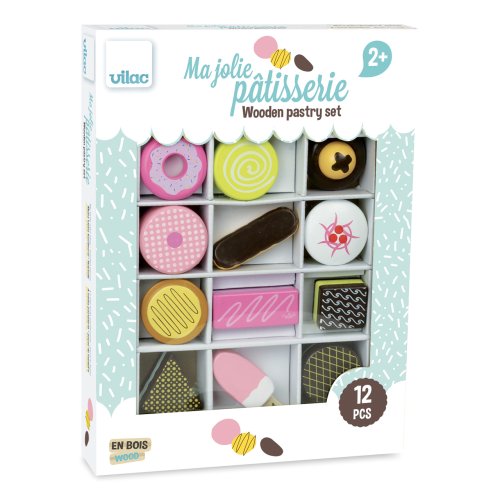 Tak jako opravdové sladkosti, i tyto dřevěné vypadají velice chutně. Balení obsahuje 12 ks zákusků a sladkostí. Hlavní vlastnosti: vhodné do každé dětské kuchyňkyobsahuje 12 ks