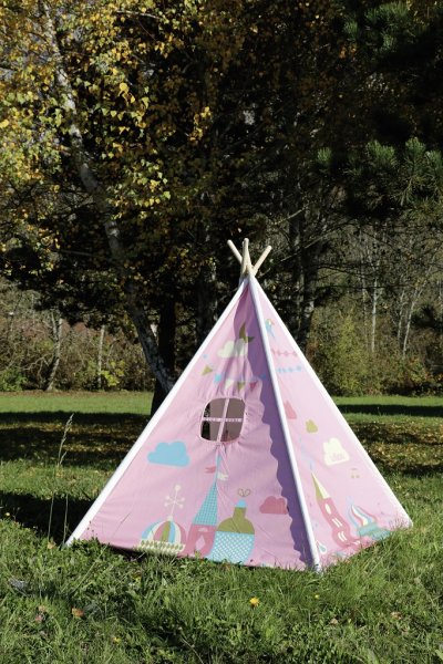 Toto krásné indiánské týpí je ideální pro hraní si na kovboje a indiány.Vhodné zejména k rozložení v interiéru, venkovnímu použití (za sucha) ovšem nic nebrání. Podpěry jsou vyrobeny ze dřeva a zabezpečují maximální stabilitu. Hlavní vlastnosti: vhodné do každého dětského pokojepevná konstrukce