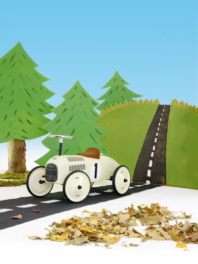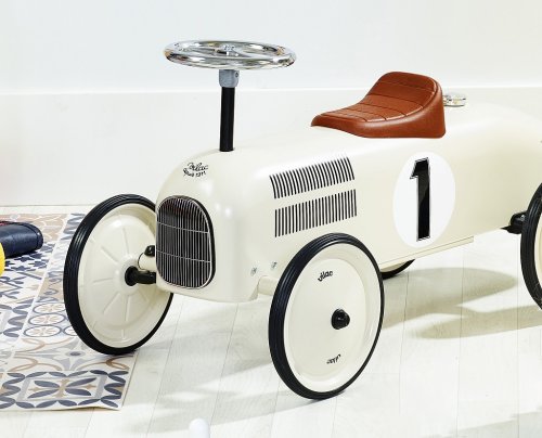Odrážedlo Vintage ve stylu závodního auta je plně kovové a má krémovou metalickou barvu. Volant ovládá zatáčení předních kol. Hnědé sedadlo je vyrobeno z plastu. Kola odrážedla jsou pogumovaná a zaručují tak tichý chod i na pevném povrchu. Hlavní vlastnosti: stabilní kovové odrážedlo s pogumovanými kolystylový originální designnosnost 20 kg