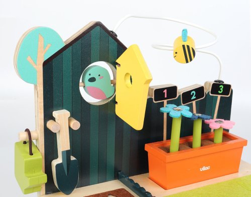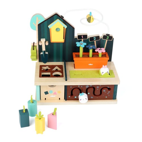 Přiveďte své dítě zpět k přírodě se zahradní multi-aktivitní hračkou, inspirovanou venkovským životem. Zahrádka je nejenom dekorativní, ale také nabízí mnoho aktivit pro Vaše dítě, přičemž mu umožňuje "dělat věci jako dospělí". S květinami k zasazení, zeleninou k sklizni, včelou, která cestuje po kovovém drátě, Vaše dítě během hraní zažije spoustu zábavy. Když použije lopatku, králíček vyleze ze svého doupěte. Zahradní multi-aktivitní hračka perfektně zapadá do naší řady hraček inspirovaných přírodou, jako je zahrada nebo zelinářství. Ideální hra pro malé zahradníky. Obsahuje: 3 květiny k zasazení,1 dřevěná lopatka,1 dřevěná konev,4 barevné dřevěné zeleniny. Multifunkční zahrádka poskytuje dětem bohaté smyslové podněty, což podporuje rozvoj jejich hmatu, zraku a sluchu. Ideální hračka pro metodu Montessori. Jsou to speciálně navržené hračky, které vycházejí z pedagogické metody vyvinuté italskou lékařkou a pedagožkou Marií Montessori. Tyto hračky jsou navrženy tak, aby podporovaly přirozený vývoj dítěte a umožňovaly jim objevovat svět okolo sebe pomocí vlastního zájmu a aktivity. Montessori pedagogika klade také důraz na respekt k individuálnímu rytmu každého dítěte. Rozvíjí také psychomotorické dovednosti a podněcuje dětskou fantazii. Díky němu si dítě může hrát a učit se mnoho hodin. Přírodní dřevo použité při výrobě zajišťuje bezpečnost a krásný nadčasový vzhled, perfektní doplněk při zařizování dětského pokoje. Při hře se děti učí sdílet, spolupracovat a komunikovat. To podporuje rozvoj sociálních dovedností a přípravu na interakce s vrstevníky. Hlavní vlastnosti: podporuje rozvoj jemné motoriky a koordinace ruky a okapodněcuje kreativní myšlení a vývoj představivostiideální hračka pro metodu Montessorihra pro malé zahradníkysenzorická stimulaceedukace skrze hru