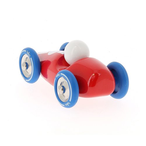 Červené závodní auto vyrobeno z lakovaného dřeva s kovovými pogumovanými koly. Je vhodné jak ke hraní tak jako dekorace do pokojů dětí či dospělých. Vyrobeno ve Francii. Hlavní vlastnosti: vyrobeno ve Francii