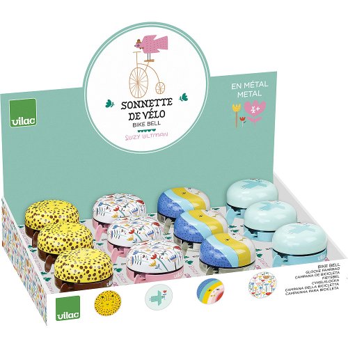 Kovové zvonky na kolo s roztomilými ilustracemi Suzy Ultman. Zvonek modrý s ptáčkem, leopard, bílý s květinami a duhový obličej. Hlavní vlastnosti: originální design standartní uchycení na řídítka Suzy Ultman od dětství vytvářela hračky a knížky pro svou rodinu a přátele. Rozená vypravěčka, Suzy je také ilustrátorkou, produktovou designérkou, tvůrkyní hraček a knížek. Vytváří hlavně sofistikované a jednoduché předměty, které inspirují a potěší mladé i staré. Suzy vyrostla v Pensylvánii, ale její život a práce ji přivedly k cestám po světě, nejen jako turistku. Žila v městech od Los Angeles po Portland, přes moře v Amsterdamu a pak zpět v Bostonu. Suzyiny poznatky z těchto míst ji výrazně ovlivňují v tvorbě, ať už jde o zkrášlení Vaší knihovny nebo o výzdobu dětského pokoje, produkty Suzy vychází z malých detailů našeho vnitřního světa, které nás umí rozesmát, které nás spojují s lidmi po celém světě. Když zrovna ve své dílně neskládá papír, nedesignuje textilie nebo nevytváří hračky, najdete ji ve starožitnictvích, ve kterých hledá poklady, na bleším trhu, nebo v přírodě.