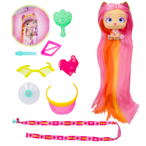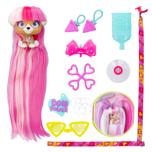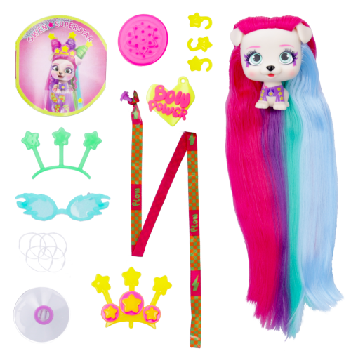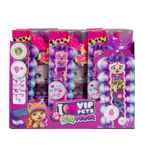 VIP Pets Bow Power je sada tematických figurek psů určená pro děti ve věku od 4 do 6 let, která nabízí zábavnou a kreativní hru s úpravou vlasů. V balení najdete šest různých pejsků jménem Kim, Natty, Aurora, Shiara, Gwen a Juliet, každý s unikátní stuhou, která je charakteristickým doplňkem a odlišuje je od ostatních. Pejsci jsou barevně velmi pestrí, což přispívá k vizuální atraktivitě celé kolekce a umožňuje dětem rozvíjet fantazii při vytváření různých účesů.