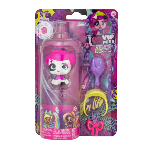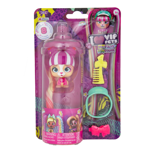 Stejně jako jejich idoly VIP PETS, Mini Fans následují nejnovější trend: Bow Power! Mini Fans Bow Power je kolekce 8 mini štěňat se super dlouhými vlasy. Balení obsahuje 4 překvapení: 1 minipejska a 3 vlasové doplňky. Všechni pejsci mají různé doplňky! Kombinujte je a vytvořte ten nejodvážnější městský vzhled! Nyní si můžete vybrat svou oblíbenou postavu v novém balení ve tvaru laku na vlasy!