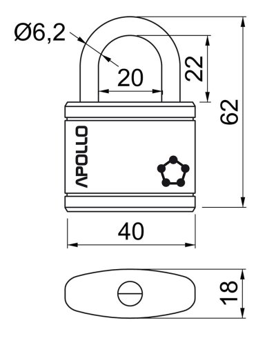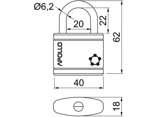 Těleso šíře 40 mm, ocelový třmen o ø 6,2 mm