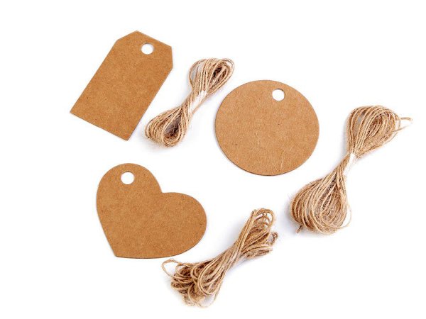 Papírovou visačku můžete přivázat jako jmenovku k balíčku, pytlíčku, přání apod. Je vyrobená z pevného papíru. V horní části má vyražený kruhový otvor. Součástí balení je šňůrka na přivázání. Visačku můžete využít na jakékoliv zboží, je pěkná i jako dekorace.V jednom sáčku je [10 ks visaček.] Rozměry č. 1 - srdce - 4,5 x 6 cm. Průměr: č. 2 - kolečko - 5,5 cm. Rozměry č. 3 - visačka - 3,5 x 6 cm.