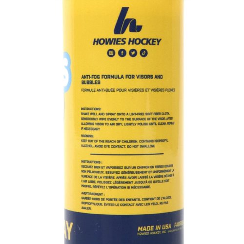 Howies Antifog sprej je speciální přípravek určený k ochraně hokejových plexiskel proti zamlžování. Stačí několik střiků, rovnoměrné rozetření a vaše vidění zůstane ostré i během nejintenzivnějších zápasů nebo tréninků. Objem je 118 ml. Použití: Dobře sprej protřepejte a nastříkejte na měkký hadřík. Důkladně a rovnoměrně naneste na povrch plexi. Poté, co plexi necháte uschnout, lehce jej vyleštěte, dokud nebude čisté. V případě potřeby opakujte. Uchovávejte mimo dosah dětí.