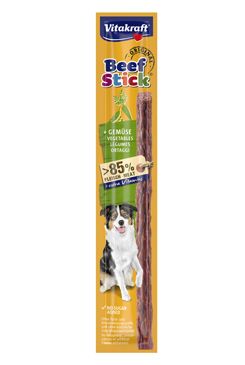 Oblíbené masové tyčinky Vitakraft Beef Stick s hovězím masem (vysoký obsah masa) a zeleninou. Pamlsek je určen pro dospělé psy. Ve složení nejsou obsažena žádná umělá dochucovadla, barviva a konzervanty.