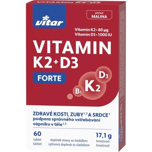 Vitamíny Vitar, přípravek určený k podpoře správného vstřebávání vápníku v těle s pomocí Vitaminu K2 a D3 Určeno pro všechny, kteří chtějí zdravé kosti, zuby a srdce Zdravé a pevné kosti jsou důležité …