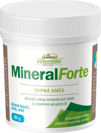 Nomaad Mineral Forte je veterinární nutriční přípravek na podporu zdravého růstu kostí, zubů a srsti u psů a koček. Sypká směs ve složení Aquaminu F a pivovarských kvasnic. Aquamin F – přírodní zdroj minerální látek vyráběných z vápenatých mořských řas. Mořské řasy jsou získávány z mořského dna Severního Atlantiku, z čistých, neznečištěných minerálně bohatých vod. Obsahuje bioaktivní vápník, hořčík a dalších 74 minerálních látek a stopových prvků, např. fosfor, železo, molybden, zinek, nikl, měď a další. Vápník je základním stavební složkou kostí, je nezbytný pro jejich zdravý vývoj, ale také v pozdějším věku zvířete pro udržení jejich pevnosti. Pivovarské kvasnice jsou jedním z nejbohatších přírodních zdrojů vitaminů skupiny B a některých minerálních látek. Obsažené látky zlepšují chuť k jídlu, vitalitu, kvalitu kůže a srsti. Navíc působí proti průjmově. Dále mají příznivý vliv na reprodukci, jsou ideální pro kojící samice a správný vývin štěňat a koťat. Obsažené látky ve výrobku jsou z čistě přírodních zdrojů. Složení: Aquamin F (mořský multiminerální komplex), pivovarské kvasnice (směs vitaminů a minerálních látek). Aktivní složky ve 4 g (vrchovatá čajová lžička): Aquamin F 2 000 mg obsahuje: vápník 32 % (640 mg), hořčík 2,2 % (44 mg). Pivovarské kvasnice 2 000 mg obsahují: vitamin B1 0,14 mg, vitamin B2 0,064 mg, vitamin B6 0,032 mg, vitamin B12 0,042 µg, kyselina pantothenová 0,06 mg, kyselina listová 16 µg, niacin 0,86 mg, vápník 5,6 mg, draslík 36 mg, fosfor 22 mg, železo 0,14 mg, měď 10 µg, mangan 14 µg, zinek 0,1 mg. Doporučené dávkování: 4 g na 10 kg hmotnosti zvířete. Přidávejte k běžné stravě zvířete, případně rozmíchejte ve vodě a podávejte jako součást pitného režimu.