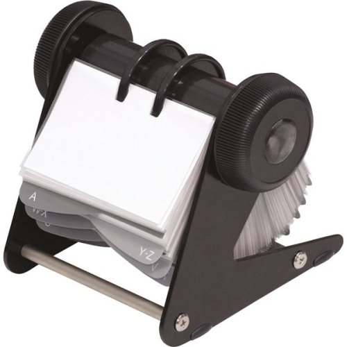 Robustní černá kovová základna Obsahuje 24 abecedních rozdělovníků (A-Z) Pojme 200 listů vizitek Kapacita: 400 vizitek Velikost kapsy: 66x103 mm