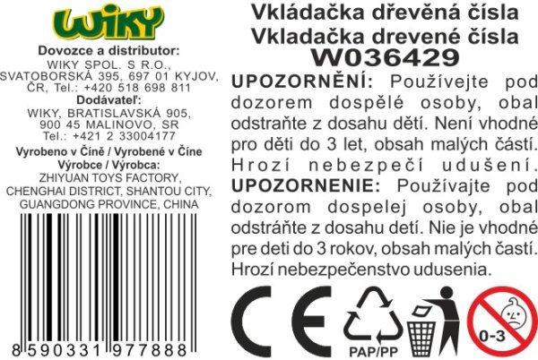 Vkládačka dřevěná čísla. Rozměry 30x22,5 cm.