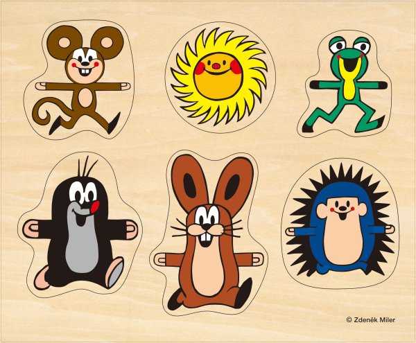 Vkládačka kamarádi dřevěná Krtek. Rozměry 31,5x26x0,8 cm.