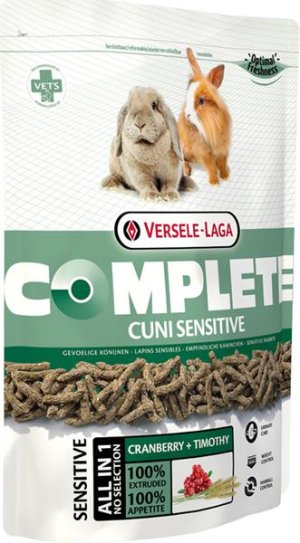 Versele-Laga Complete Cuni Sensitive poskytuje výživu bez zbytečných starostí. Výjimečná chutnost pelet vše v jednom předchází vybíravosti. Tak váš králík dostane všechny nezbytné prvky výživy a zůstane zcela zdravý. Krmivo s přírodně dlouhou vlákninou pomáhá předcházet trichobezoárům a obezitě. Optimální obsah vápníku a výtažek z brusinek pomáhá udržovat zdravé močové cesty. Versele-Laga Complete Cuni sensitive je vyvinuto veterináři na základě moderních vědeckých poznatků.