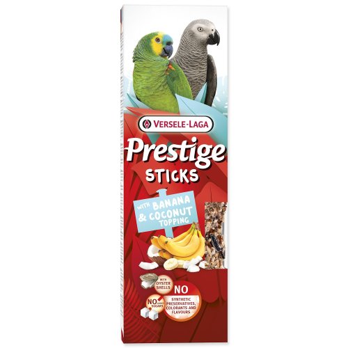 2 extra velké pečené tyčinky ze semínek, s banánem a kokosem – doplňkové krmivo pro velké papoušky.