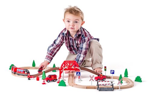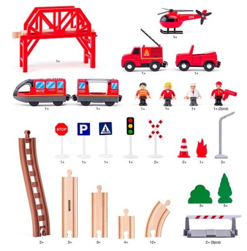 Vláčkodráha s elektrickou mašinkou, hasiči, 60 dílů