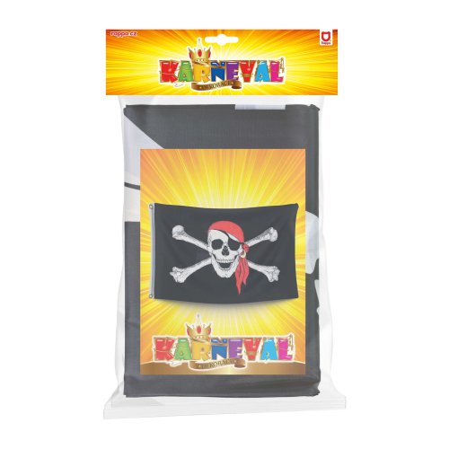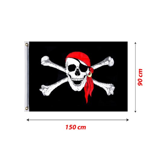 Parádní vlajka s děsivým, pirátským motivem pro skutečné piráty! Na vlajce najdeš na jedné straně 2 otvory (cca 11 mm), pro snadnější uchycení vlajky na tyč. Rozměry vlajky činí 90 x 150 cm.