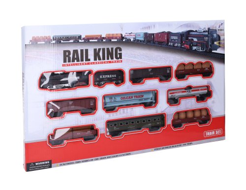 detailní propracování vláčku velký počet nákladních vagónů svítící lokomotiva Rozměry: 122 x 68 cm