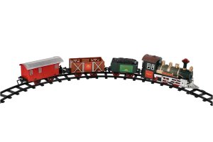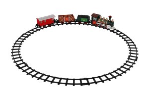 Tato super vlaková souprava kolejemi nadchne jistě každého kluka. Postav si trať a nech vláček jezdit. Občas nezapoměň zastavit a nechat vystoupit a nastoupit nové cestující... Balení obsahuje: lokomotivu, které svítí světla, 3 vagónky, 6 ks zatáček a 2 ks rovných kolejí. K provozu jsou třeba 2 x AA baterie do mašinky (nejsou součástí). Rozměry okruhu: 107 cm Rozměr balení: 41 x 28 x 6 cm Nevhodné pro děti do 3 let