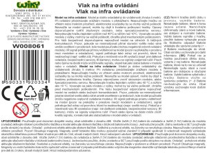 Ovladač - jízda dopředu, jízda dozadu. 3xAA do vlaku, 2xAA do ovladače nejsou součástí.