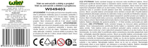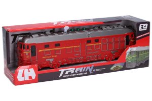 Vlak na setrvačník s efekty a projekcí červený. Rozměry 33x8x6 cm. Vydává světelné a zvukové efekty, projekce. Aktivace tlačítky na střeše (zvuky vlaku a železnice). Baterie 3xAG13, součástí balení.