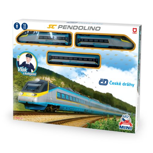 Milujete cestování vlakem? Tak sestavte koleje, postavte na ně lokomotivu, připojte vagóny a vzhůru za dobrodružstvím! Originální vlak Pendolino obsahuje přední a zadní lokomotivu a 1 vagón, 8 zahnutých a 4 rovné koleje. Lze vytvořit kolejiště až do velikosti 96 x 58 cm. Rozteč kolejí je 1,4 cm. Lokomotiva měří na délku 14 cm a vagón 13,5 cm. Lokomotiva jezdí na 1 ks AA baterie (není součástí), na střeše lokomotivy vypínačem ON/OFF (zapnuto/vypnuto) uvedete vlak do chodu. Vlak Pendolino MINI lze kombinovat s vlakem RegioJet MINI a Slovenské dráhy MINI.