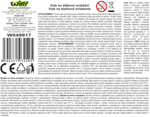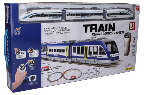 Vlak RC na dálkové ovládání s dráhou. Rozměry sestavené trati 146x64 cm. Délka trati, 397 cm. Vlak vydává světelné a zvukové efekty. Set obsahuje 81 dílů. Infračervený port. Vagóny jsou propojeny magnety. Vlak - 3xAA, nejsou součástí. Ovladač - 2xAA, nejsou součástí. ON/OFF spínač uprostřed ovladače. Pohyb po směru hodinových ručiček - levé tlačítko svítí, zmáčkni horní tlačítko. Pohyb proti směru hodinových ručiček - pravé tlačítko svítí, stiskni dolní tlačítko. Návod na sestavení na zadní straně obalu.