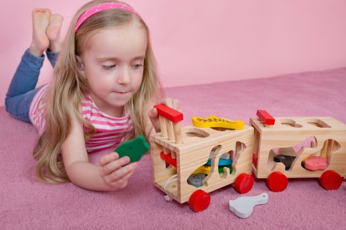 Tahací dřevěná mašinka na kolečkách se dvěma vagonky s otvírací mříží pro spoustu zvířátek. Ale pozor, každé zvířátko může do vagonku jen jedním otvorem a musíte najít ten správný! Rozměry: 66 x 11 x 10,5 cm, 14 dílů.