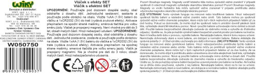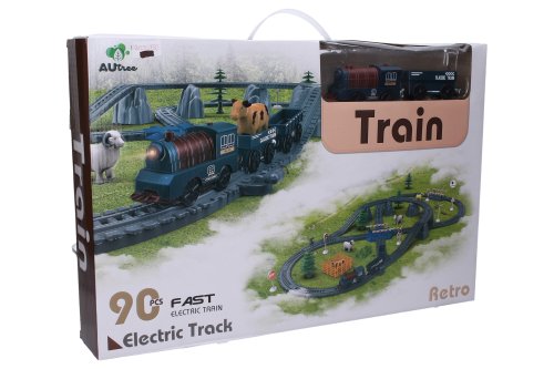 Vlak trať s efekty. Rozměry sestavené trati 112x61x7,5 cm. Vláček je propojený magnety. Trať vydává zvukové efekty. Aktivace přepínačem na mašince - směrová tlačítka pro jízdu v daném směru. Část trati aktivuje zvukové efekty, 1x3V CR2032 baterie jsou součástí. Vláček - 1xAA (1,5V), není součástí. Sada se skládá z 90 dílků.