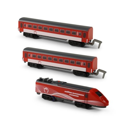 Milujete cestování vlakem? Tak sestavte koleje, postavte na ně lokomotivu, připojte vagóny a vzhůru za dobrodružstvím! Originální vlak Slovenské dráhy obsahuje lokomotivu a 2 vagónky, 8 zahnutých a 4 rovné koleje. Lze vytvořit kolejiště až do velikosti 96 x 58 cm. Rozteč kolejí je 1,4 cm. Lokomotiva měří na délku 14 cm a vagón 13,5 cm. Lokomotiva jezdí na 1 ks AA baterie (není součástí), na střeše lokomotivy vypínačem ON/OFF (zapnuto/vypnuto) uvedete vlak do chodu. Vlak Slovenské dráhy MINI lze kombinovat s vlakem RegioJet MINI a Vlakem Pendolino MINI.