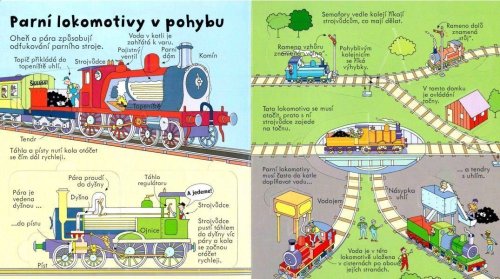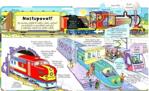 Seznam se díky této encyklopedické knížce, mající více než 60 odklápěcích okének, s různými typy vlaků. Prozkoumej je a zjisti něco nového! Seznam se díky této encyklopedické knížce, mající více než 60 odklápěcích okének, s různými typy vlaků – vlaků, které za slunečného dne, za deště či ve sněhu rachotí po kolejích a převážejí cestující a náklady zboží do všech koutů světa. Odklop tedy okénka a dozvíš se něco o historii vlaků, zjistíš nové informace o parních vlacích, o tom, jak lokomotivy pracují, o těch největších i o těch nejrychlejších vlacích, o vlacích v podzemí nebo těch, které zdolávají kopce. Tak honem nastupovat, jedeme!